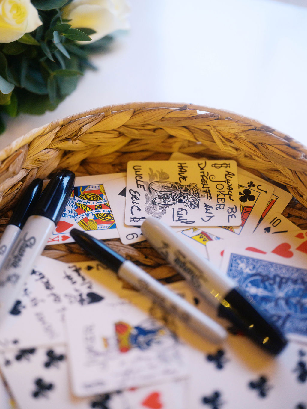 Following cocktail hour, an open-air wedding reception awaited. Guests were escorted to their seats with a ‘welcome’ shot of tequila featuring lime wedges with seating cards. Lush white floral arrangements, and stem vases of warm yellow florals, along with design & decor were provided by Finest Play Mujeres.