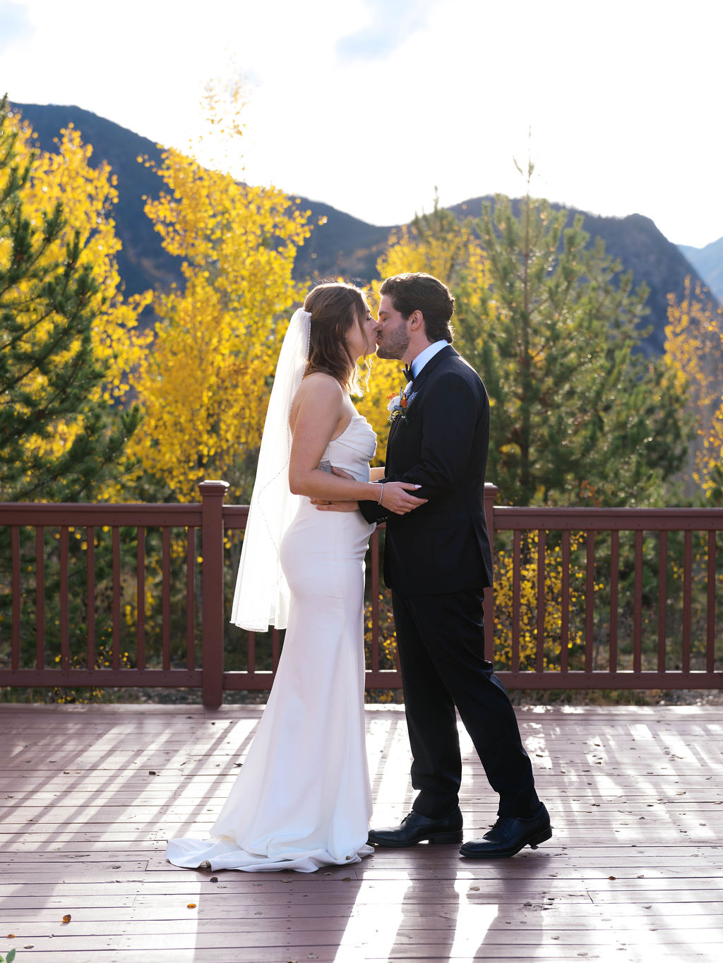 In the space where the mountain tops touch the sky, and the clouds accentuate the vast blue horizon, lies Frisco Day Lodge’s wedding overlook. You’ll find the Frisco Lodge wedding ceremony deck quietly nestled between forested pines and towering aspen trees. The intimate space overlooks the Rocky Mountains, with an added view of the Tenmile Mountain Range, standing firm in the backdrop.