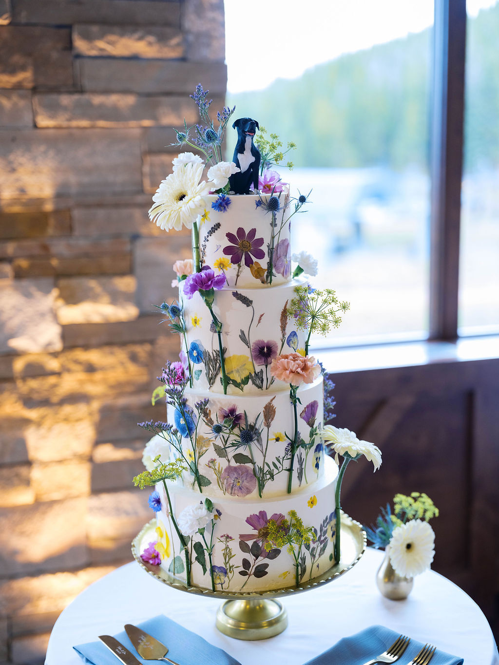 When it was time to join their friends and family in celebration, Natasha and Joe descended the mountainside to the reception space at The 10th Vail. Inside, floor-to-ceiling windows offered a view of the valley while guests dined for the evening.