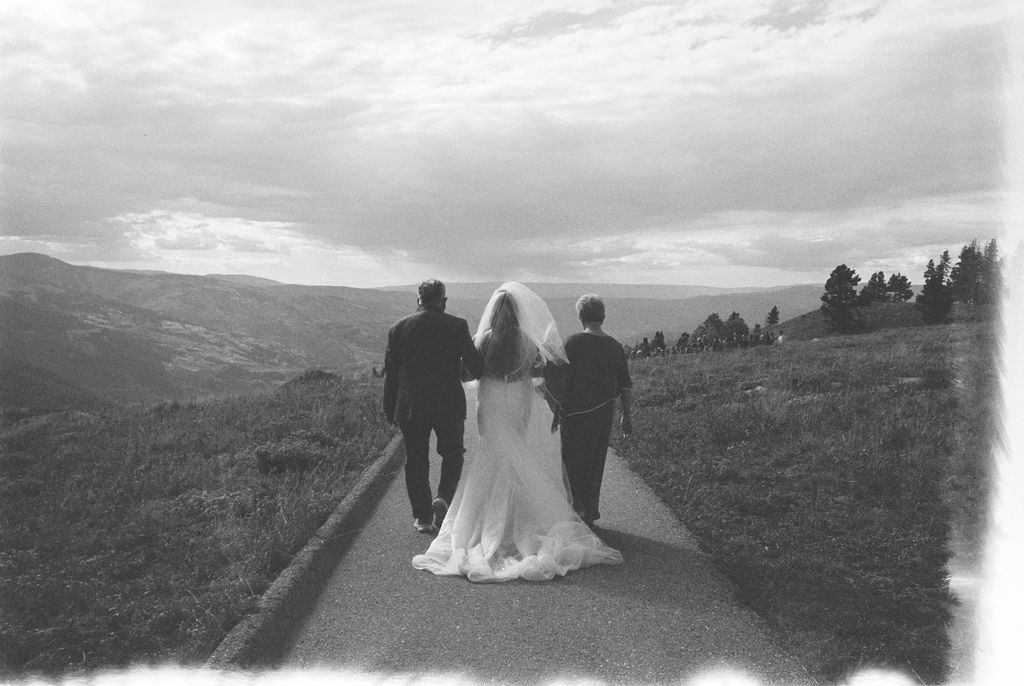 As a Vail wedding photographer, my packages offer the inclusion of film photography to draw on the emotion of the day and enrich your natural surroundings. The skies overhead on the day of Natasha and Joe’s wedding were accented with streaks of clouds, but the valley below was a canvas of color. Towering trees, rocky mountain views, and peaks and valleys were an oasis of tranquility.